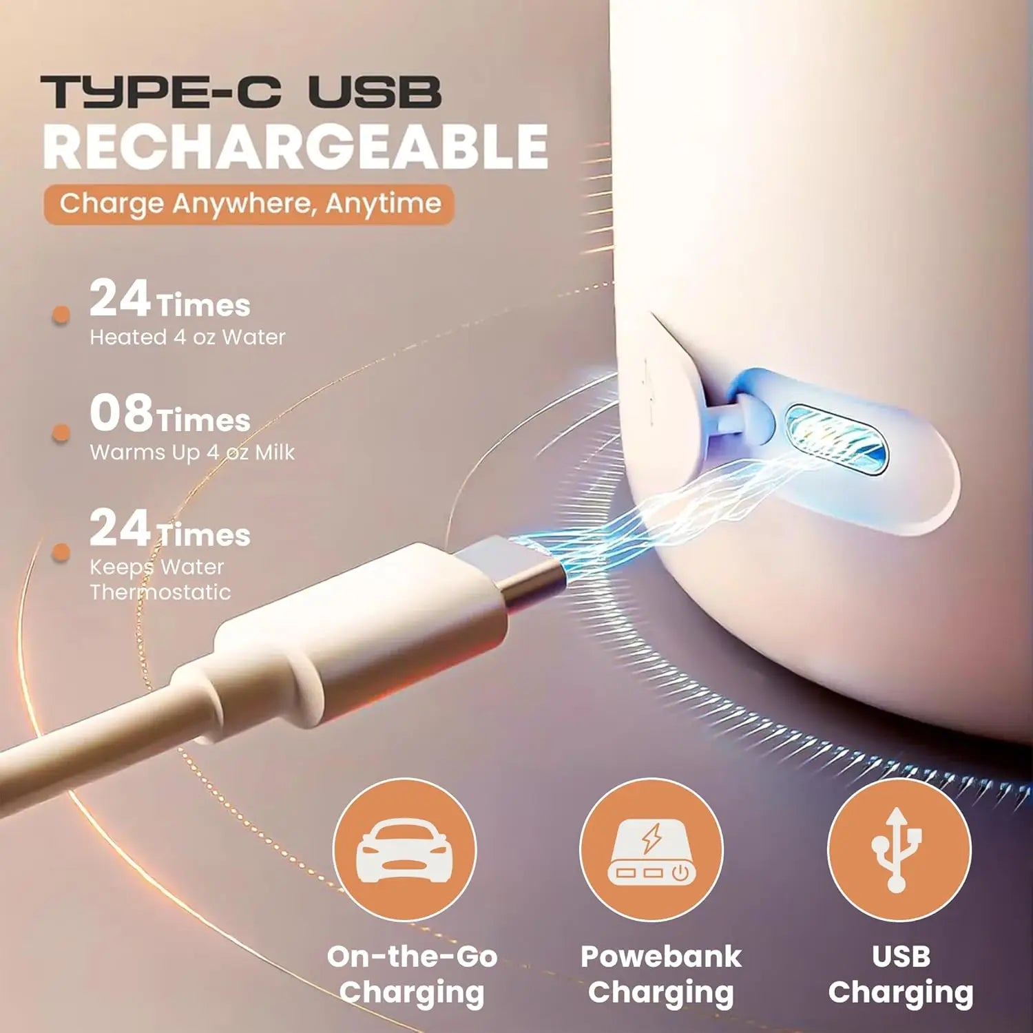Chauffe-biberons portables rechargeables 37-55 °C, chauffage et décongélation rapides du lait et de l'eau, chauffe-biberons électriques sans fil, idéal pour les voyages